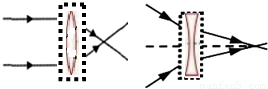 点评:解答本题需要明确凸透镜和凹透镜的光学性质,同时会判断光线的发散与会聚.