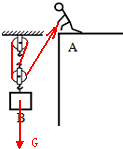 如图所示,某人站在A处用一根绳子和两个滑轮提起物体B,画出物体B的重力的示意图和最省力的绕线方法.