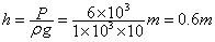 (2)桶的侧壁上有一个小阀门A,它能承受的水的压强最大为6×103Pa,当A距水面多深时,它将被水冲开?