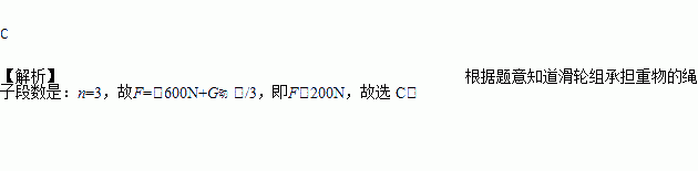 用如图所示的滑轮组匀速提升600N的重物时,人手实际需提供的拉力应该( )