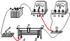½â´ð£º½â£º£¨1£©Ñ¡Ôñ»¬¶¯±ä×èÆ÷ÏÂÃæÁ½¸ö½ÓÏßÖùÖеÄÒ»¸ö½ÓÈëµç·£»ÒòÓ묶¯±ä×èÆ÷µÄ´æÔÚ£¬µçÁ÷±íÁ¿³ÌÑ¡Ôñ0¡«0.6A£»