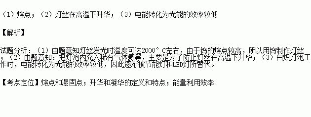 (1)由于钨的 较高,所以用钨制作灯丝;