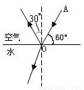 解答:解:首先做出法线,入射光线与水面的夹角是60°,所以入射角为90°-60°=30°,根据反射角等于入射角做出反射光线,反射角也为30°;当光从空气中斜射入水中时,折射光线将向靠近法线的方向偏折,即折射角小于入射角,如下图所示: