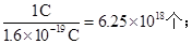 【解析】每个电子电荷量为q=1.6×10-19C;则1C的电量需要的电荷为:n=