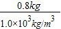 解:装满水时水的质量m水=1.0kg-0.2kg=0.8kg