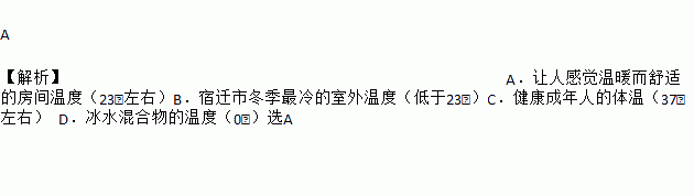 A ¡¾½âÎö¡¿A£®ÈÃÈ˸оõÎÂů¶øÊæÊʵķ¿¼äζȣ¨23¡æ×óÓÒ£©B£®ËÞǨÊж¬¼¾×îÀäµÄÊÒÍâζȣ¨µÍÓÚ23¡æ£©C£®½¡¿µ³ÉÄêÈ˵ÄÌåΣ¨37¡æ×óÓÒ£© D£®±ùË®»ìºÏÎïµÄζȣ¨0¡æ£©Ñ¡A