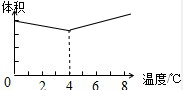 可以确定其体积是逐渐增大的.即当水在4℃时,其体积最小.故水的体积与温度变化大致图象如下图所示.