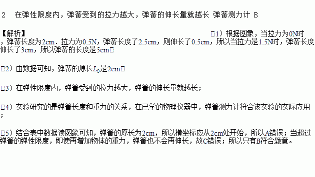 下表为小明同学做“研究弹簧的长度与拉力关系”的实验记录数据: