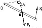 解答:解:支点为点O,由于力臂是支点到力的作用线的距离,故过O1作力臂的垂线,交杠杆于一点B,即为F2力的作用点,由于F1使杠杆有逆时针转动的趋势,则F2使杠杆有顺时针转动的趋势,方向向下.