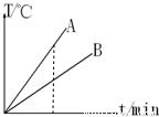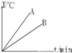 解:由图象可知:质量和初温都相同的A、B两物,在加热时间相同即吸收的热量一定时,A的温度变化值大;