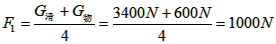 (2)G滑=4F-G1=4×750N-2400=600N,