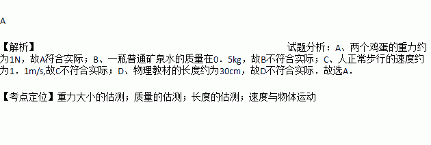 A. 两个鸡蛋的重力大约是1N