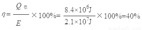 (4)煤气燃烧放出的热量全部被水吸收,即Q放=Q=8.4×106J,