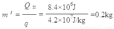 (1)8.4×106J; (2)2.1×107J; (3)40%; (4)0.2kg。