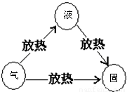 解答:解:物质由气态变为液态放热,气态变为固态放热,液态变为固态放热,根据这个规律填写如下.