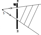 S为一点光源.M,N为一不透明的墙壁.请在图上画出光线通过M、N狭缝能照射到的区域,并在该区域画上斜线: