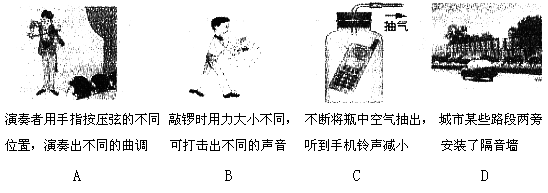 图中情景中能够推理说明声音的传播需要介质的是( )A.演奏者用手指按压弦的不同位置,演奏出不通的曲调