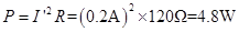 某一定值电阻接在12V电源上,通过它的电流为0.1A,则它的电阻为 Ω,若它的电流增大到0.2A,此时其电功率为__________W。