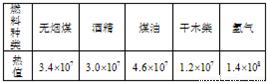 | 燃料种类 | 无烟煤 | 酒精 | 煤油 | 干木柴 | 氢气 |