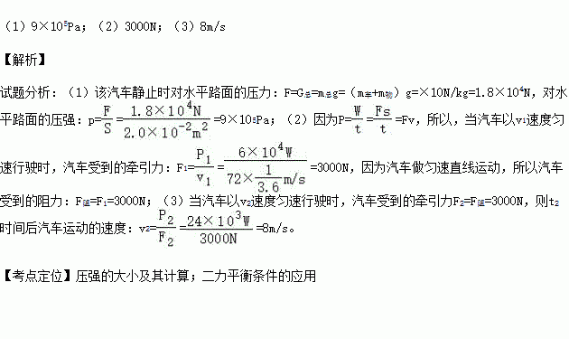 (1)该汽车静止时对水平路面的压强.