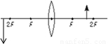 解答:解:由图知,物体在1倍焦距到2倍焦距之间,所以此时像在2倍焦距之外,此时成倒立、放大的实像.如图所示: