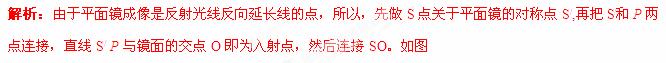 如图8所示,MN是平面镜,S是镜前的点光源,它发出的光经平面镜反射后有一条光线经过P点,试画出光由S到P的光路图。