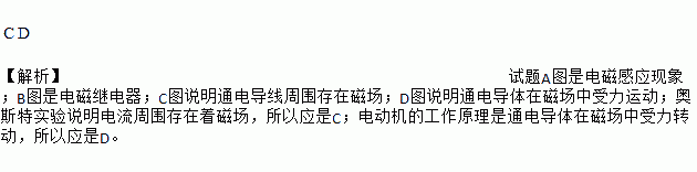 如图所示的四个电磁实验中,模拟奥斯特实验的是________;能够说明“电动机工作原理”的实验是________.
