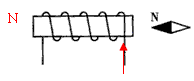 在图中标出通电螺线管的N极和电流方向。