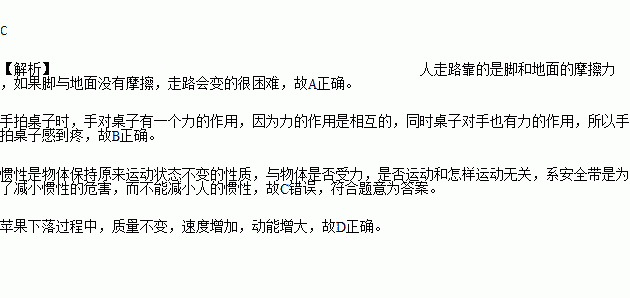 A. 如果脚与地面没有摩擦,走路会变的很困难