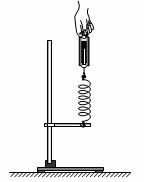 小阳学习了弹力的知识后,发现给弹簧施加的拉力越大时,弹簧的伸长就越长。于是小阳猜想:弹簧的伸长量跟所受拉力成正比。实验桌上有满足实验要求的器材:两端有钩的弹簧一根,已调零的弹簧测力计一个、带横杆的铁架台一个、刻度尺一把。他利用上述器材进行了以下实验: