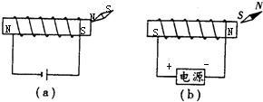 (2)先由磁极间的相互作用规律得出右边的通电螺线管的左端为S极,右端为N极,再由右手螺旋定则得出电源的极性.