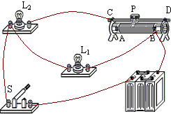 分析:两灯泡并联,用滑动变阻器改变通过L2的电流大小,说明滑动变阻器只与L2串联.