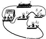 解答:解:电流经开关后:一支电流流经灯泡L1和电流表后回到电压表的负极,另一支电流流经L2后回到电源的负极,如图所示.