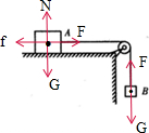 分析:要想画出物体A和物体B的受力示意图.首先要对两个物体进行受力分析,A物体受拉力与摩擦力,重力与支持力;B物体受拉力与重力作用.物体静止不动,说明物体受平衡力.