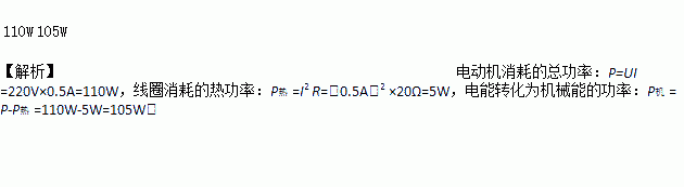 电动机两端的电压是220V,线圈电阻是20 ?,工作电流是0.5A,则电动机消耗的功率是____W,电能转化为机械能的功率是_____W。