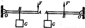 解答:解:(1)左图中,LOB是阻力臂,LOA是动力臂,