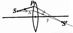 (2)由于S′是S通过凸透镜所成的像,由此可以画出入射光线SP经过凸透镜折射后的折射光线.