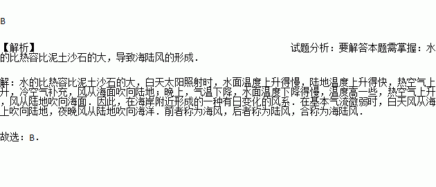 由于水的比热容比沙石或干泥土的比热容大,所以在沿海地区陆地表面的气温比海面的气温昼夜变化显著.因此( )