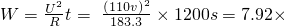 W=220V×1.2A×1200S=3.168×105J;