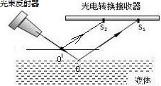 点评:本题中的液面上升或下降,法线和入射光线不变,所以入射角不会变化,反射角也不会变化,从而导致反射光线只是平行移动,光电转换接收器的光点随反射点的移动而移动.