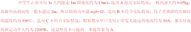 | D.教室里日光灯正常发光通过的电流约为10A |