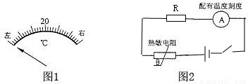 £¨2£©ÉÏÊöµç·ÖУ¬ÎÒÃǽ«µçÁ÷±íÖеĵçÁ÷¿Ì¶È»»³ÉÏàÓ¦µÄζȿ̶ȣ¬¾ÍÄÜÖ±½ÓÏÔʾ³öÈÈÃôµç×踽½üµÄζȣ®Èç¹û¿Ì¶ÈÅÌÕýÖеÄζȿ̶ÈֵΪ20¡æ£¨Èçͼ1Ëùʾ£©£¬Ôò25¡æµÄ¿Ì¶ÈÓ¦ÔÚ20¡æµÄ______±ß£¨Ìî¡°×ó¡±»ò¡°ÓÒ¡±£©