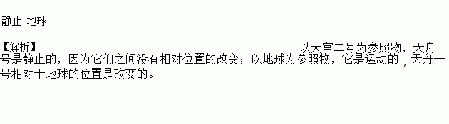 2017年4月22日12时23分,天舟一号与天宫二号顺利完成自动交会对接.这是我国自主研制的货运飞船与空间实验室的首次交会对接,是我国载人航天工程的又一重大突破.如图所示是组合飞行体在绕地飞行时的情景,在此过程中,以天宫二号为参照物,天舟一号是_______的,以______为参照物,它是运动的.