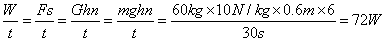 所需的物理量有:人的质量m=60kg ,身体向上的高度h=60cm ,0.5min内次数n=6。