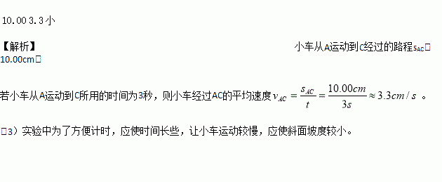 (2)若小车从A运动到C所用的时间为3秒,则小车经过AC的平均速度vAC=____cm/s(结果保留一位小数)。