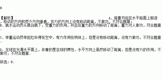 A. 小明背着书包在水平路面上前进 B. 跳水运动员从跳台跳下