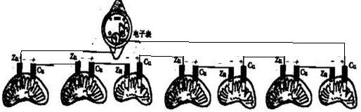 分析:由于电子表的正常工作电压是1.5V,水果电池的电压在0.2V左右,故要7个水果电池串联后为电子表提供电压.