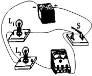 把灯L1并联在电流表与灯L2串联电路两端,电路图如图所示.