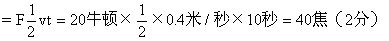 (8分)在图装置中,物体m=10千克,在F的作用下,m以0.4米/秒的速度在水平面上作匀速直线运动,弹簧秤的示数为10牛顿。求: