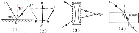 点评:此题考查了光的反射定律、平面镜成像的特点、凸透镜和凹透镜的光学性质、光的折射定律等知识点,是一道光学综合题.